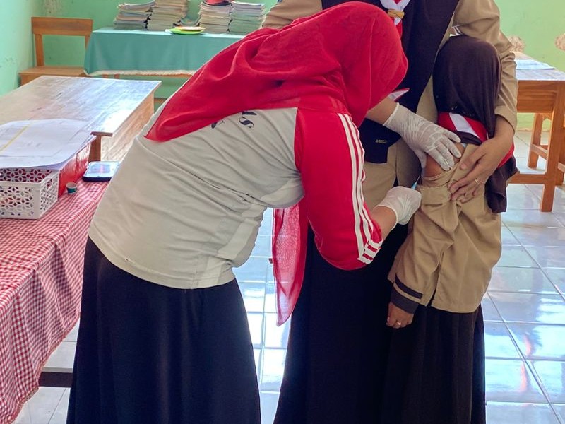 Imunisasi dilakukan secara bergiliran dimulai dari siswa kelas 1 kemudian dilanjutkan oleh siswa kelas 5. Meskipun beberapa siswa terlihat tegang dan cemas, para guru dan petugas medis dengan sabar memberikan pendampingan dan motivasi. Setelah mendapatkan suntikan, siswa diarahkan untuk beristirahat sejenak di ruang yang telah disediakan.