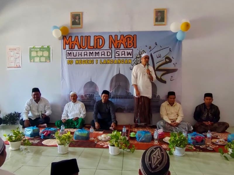 SD Negeri 1 Landangan menggelar peringatan Maulid Nabi Muhammad SAW dengan penuh khidmat dan kebersamaan. Acara ini dihadiri oleh guru,murid, orang tua murid, Habib, serta tokoh masyarakat sekitar yang turut serta memeriahkan kegiatan. Dengan tema memperingati kelahiran Rasulullah, kegiatan ini bertujuan untuk meneladani akhlak mulia Nabi Muhammad SAW dalam kehidupan sehari-hari.